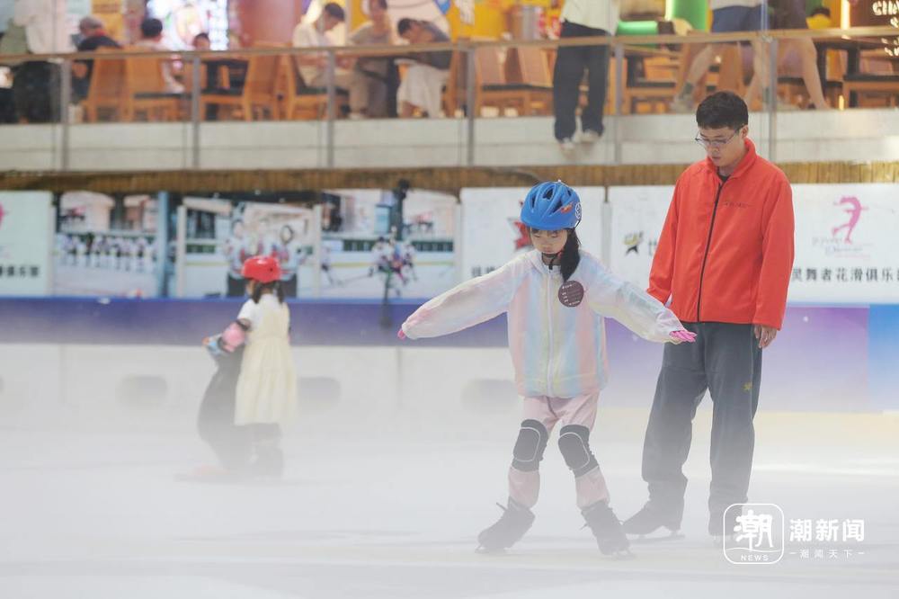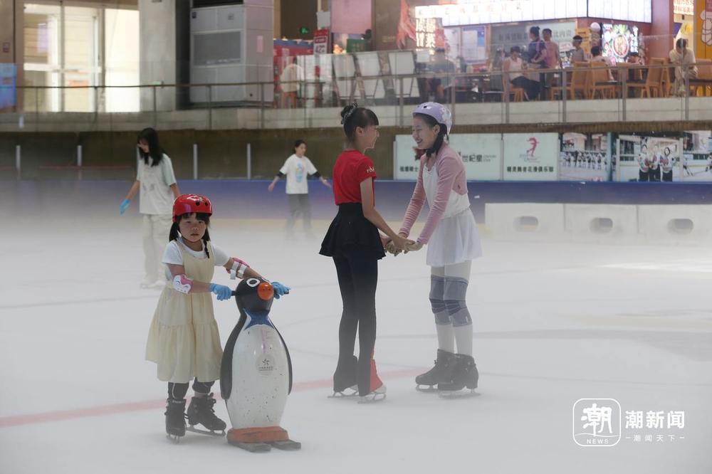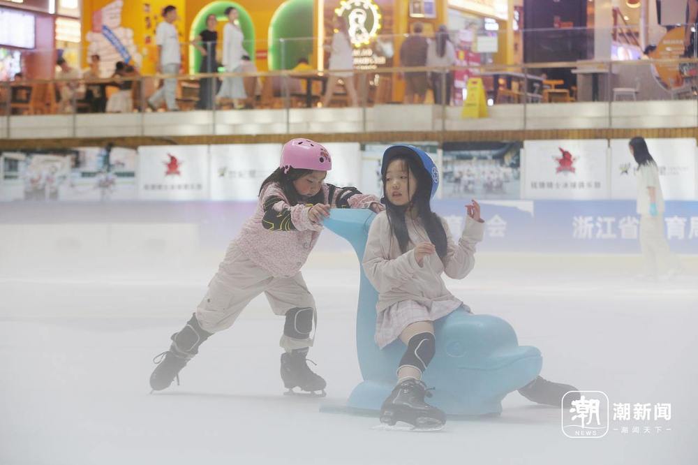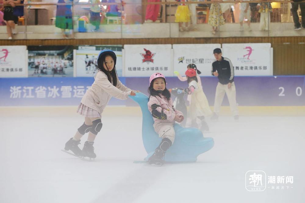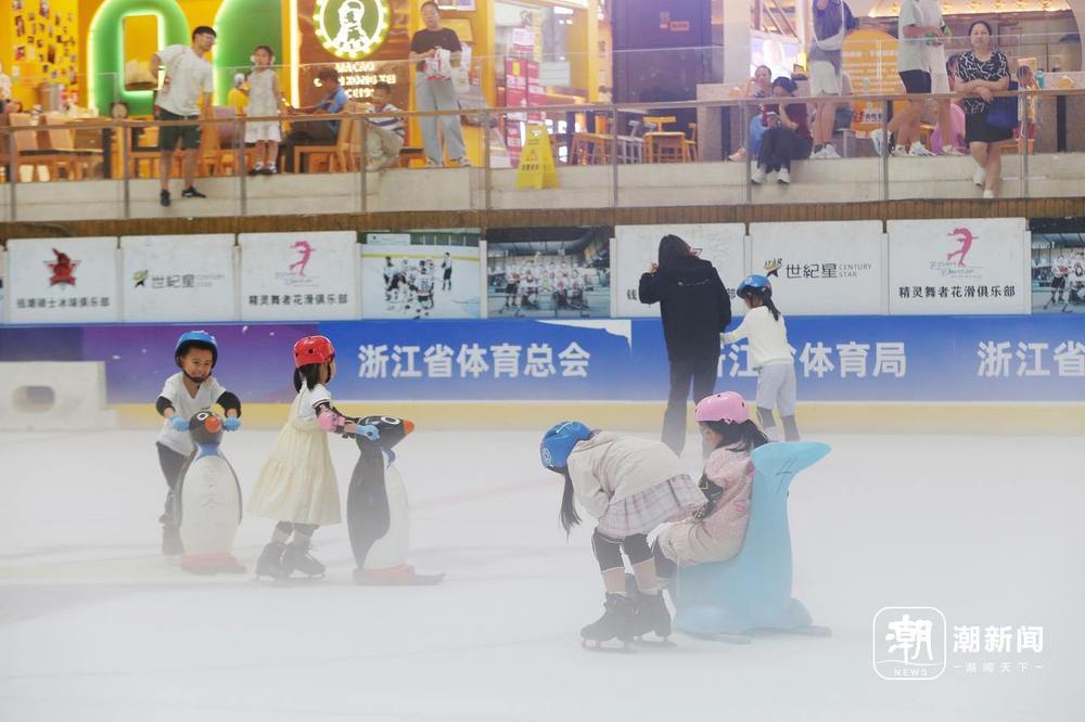 杭州持续高温,“反季玩雪”成为不少市民清凉消暑、悠闲度夏的新选择。7月19日,杭州乐堤港溜冰场里,市民换上冰鞋厚衣服,在高温天气下体验独特的冰雪项目,为炎炎夏日注入清凉活力。