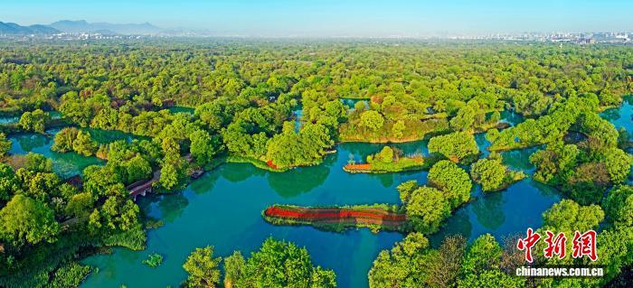杭州相继实施了西湖、西溪、大运河等综合保护工程,让湿地融入城市空间。例如全国首个国家级湿地公园——西溪湿地探索形成的湿地为“玉”、周边为“金”的湿地与城市一体化发展“金镶玉”模式,为全球城市中湿地的保护和利用提供了科学有效的借鉴模式。