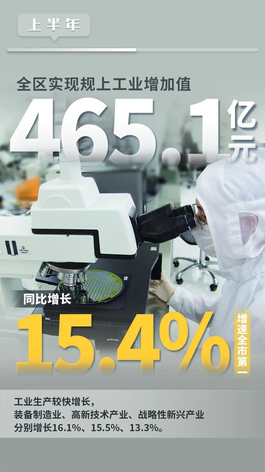 记者7月25日从杭州高新区(滨江)获悉,滨江上半年经济半年报新鲜出炉:全区实现GDP1559.9亿元,同比增长7.3%,总量与增速双双稳居杭州第二;规上工业增加值同比增长15.4%,增速保持杭州首位,产业“含智量”持续攀升。