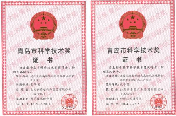 近日,新希望六和股份有限公司(000876.SZ)在饲料节粮和原料替代领域新获得四川省科技进步一等奖一项、二等奖一项、青岛市科技进步二等奖两项,标志着公司坚定践行科技驱动战略,专注于节粮饲料资源高值化利用关键技术的研究成果再次获得权威认可。