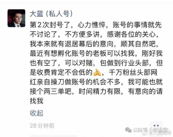 此前,各平台也处理封禁过一批账号。例如,账号“老陶说真话”因涉嫌虚假摆拍并隐瞒表演性质,严重触犯了平台规定,被无限期封号处理;1000万粉丝网红、财经自媒体博主大蓝因多次发布特定股票涨跌预测内容,煽动网民全仓买入某特定股票,严重触犯法律法规,平台决定无限期封禁该账号……