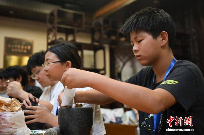 8月13日,多名欧洲华裔制作香囊。当日,“浙江大学国际联合商学院(ZIBS)世界与未来青少年暑期学校——2025年欧洲时报文化中心欧洲华裔青少年浙江行”走进杭州,来自法国、德国的30名华裔青少年参访杭州方回春堂,体验中医“望闻问切”和香囊制作,感受千年中医文化。