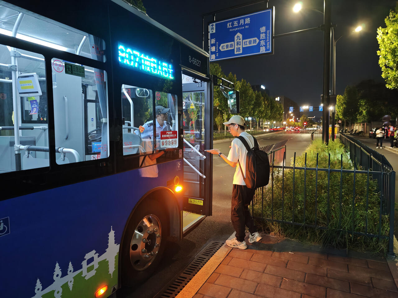 晚上10点,刚结束加班的王女士走出地铁九和路站,循着站内“夜归人巴士”海报的指引来到公交站台。拿起手机扫描站台上的预约二维码,一番操作后,屏幕立即显示“预约成功!车辆正在火速赶来,请稍候”。