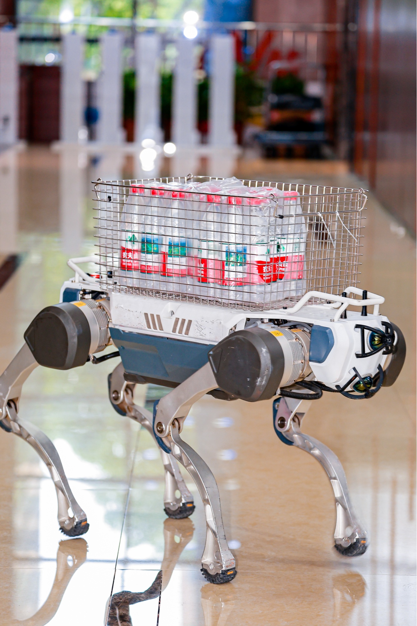 暖“新”小助手机器狗现场演示负重运输功能(西湖区委宣传部供图)
