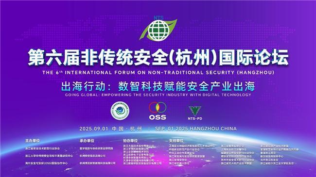 2025年9月1日上午,由浙江省安全技术防范行业协会、浙江大学非传统安全与和平发展研究中心、海外安全与安保(OSS)国际协作中心主办的第六届非传统安全(杭州)国际论坛在浙江省科协大楼报告厅举行。本届论坛以“出海行动:数智科技赋能安全产业出海”为主题,交流探讨数智安防产业出海的平台建设、国际规制和标准合作。来自非盟等国际组织官员和乌兹别克斯坦、老挝、密克罗尼西亚、塞浦路斯、约旦、南苏丹、肯尼亚、吉布提、斯里兰卡、南非和斐济等国家的30余名“一带一路”国家政府通信网络监管部门主管,以及中国、美国、以色列、巴基斯坦等国内外产业、高校、智库机构300余位代表聚焦数智科技赋能安全产业出海议题开展多项交流对话。
