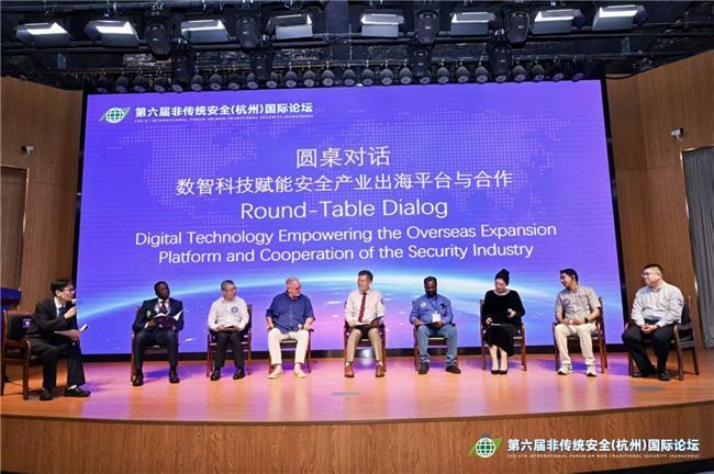 “圆桌对话”把本届论坛推向高潮。喀麦隆国家安全总局警司保罗•奥利维耶、泰国浙江商会会长祁晓云、美国网络安全和保护设计专家科丹拿、浙江大学非传统安全与和平发展研究中心主任余潇枫、斯里兰卡信息与通信技术局高级经理韦拉孔•穆迪扬塞拉格、甘肃政法大学法学院副教授崔岩、中巴经济走廊反恐问题专家伊姆兰·阿里、浙江宇视科技有限公司国际营销中心解决方案总监葛天宇等国内外领军专家和产业代表在论坛秘书长周章贵博士的提问引导下,围绕“数智科技赋能安全产业出海平台与合作”为主题展开对话,从各自学科背景、专业认知和行业实践视角分享观点并提出建议。