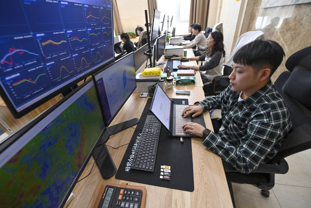电力交易员在位于山西省太原市小店区的晋控电力一家公司内工作(2024年4月1日摄)。新华社记者