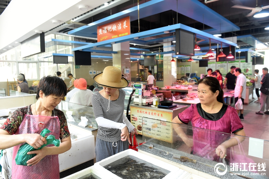 8月5日,杭州拱墅区登云路农贸市场,市民们在装有空调的凉爽环境里买菜,像逛超市一样舒适。最近,该市场在改造提升中安装了5台5匹空调,效果明显。今年初,杭州印发《市区农贸市场第三次改造提升实施方案》,将用三年时间完成对主城区所有农贸市场的空调安装。目前,登云路、半山田园等7家农贸市场已经率先完成空调安装和改造提升,另外51家市场也在计划部署中。